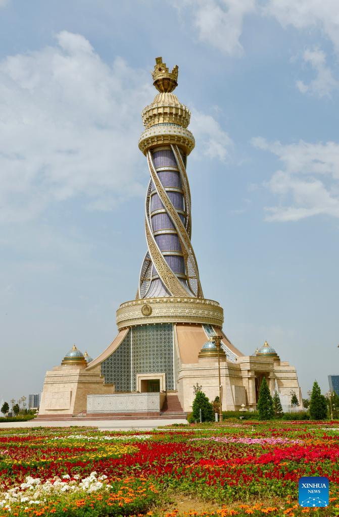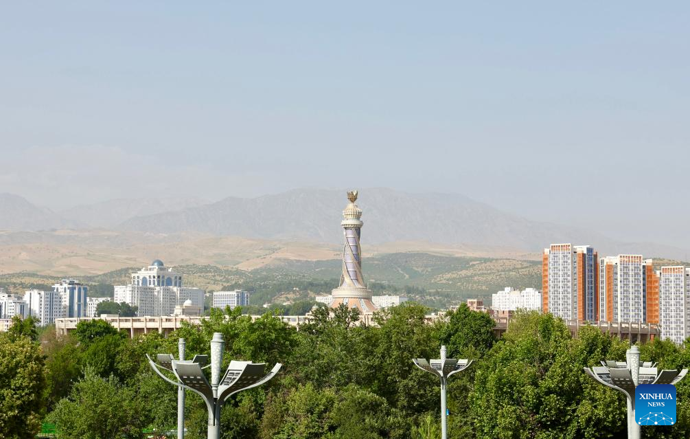 This photo taken on July 1, 2024 shows the Independence and Freedom Monument in Dushanbe, Tajikistan. Tajikistan is located in the southeast of Central Asia, with a mountainous area exceeding 90 percent of its total area. Dushanbe is the capital of Tajikistan and the country's economic and cultural center. (Xinhua/Yao Dawei)