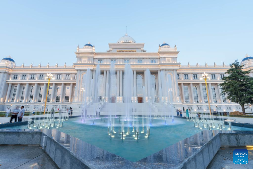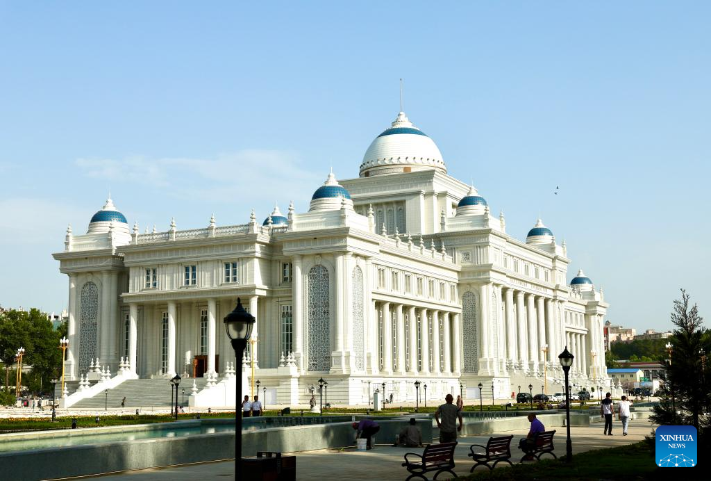 This photo taken on July 1, 2024 shows the parliament hall in Dushanbe, Tajikistan. Tajikistan is located in the southeast of Central Asia, with a mountainous area exceeding 90 percent of its total area. Dushanbe is the capital of Tajikistan and the country's economic and cultural center. (Xinhua/Yao Dawei)
