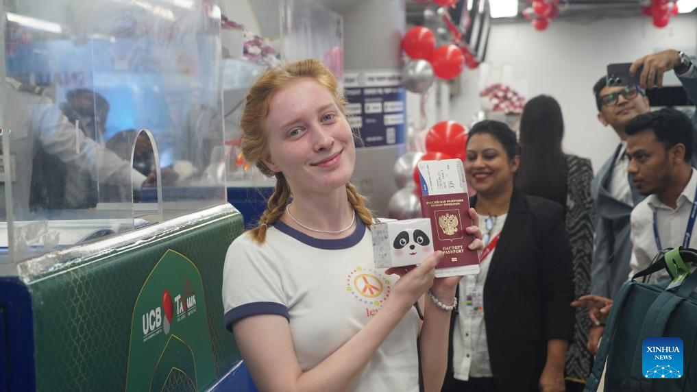 A passenger taking the inaugural Air China Dhaka-Beijing direct flight poses for a photo at Hazrat Shahjalal International Airport in Dhaka, Bangladesh, July 10, 2024. A direct flight linking Bangladeshi capital Dhaka with Beijing was inaugurated Wednesday here in Hazrat Shahjalal International Airport with an official ceremony.