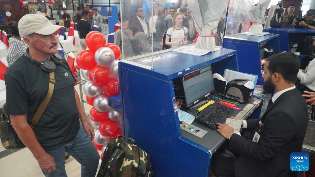A passenger taking the inaugural Air China Dhaka-Beijing direct flight checks in at Hazrat Shahjalal International Airport in Dhaka, Bangladesh, July 10, 2024. A direct flight linking Bangladeshi capital Dhaka with Beijing was inaugurated Wednesday here in Hazrat Shahjalal International Airport with an official ceremony.