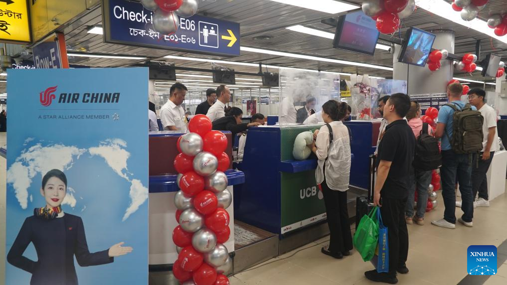 Passengers taking the inaugural Air China Dhaka-Beijing direct flight check in at Hazrat Shahjalal International Airport in Dhaka, Bangladesh, July 10, 2024. A direct flight linking Bangladeshi capital Dhaka with Beijing was inaugurated Wednesday here in Hazrat Shahjalal International Airport with an official ceremony.