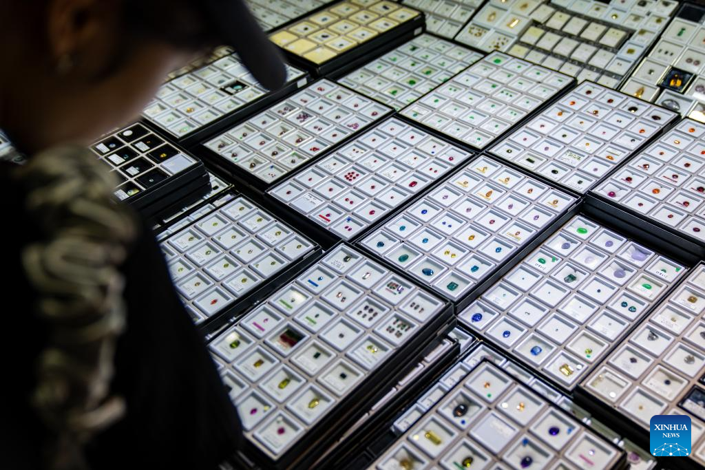 A man visits TOKYO JEWELRY FES in Tokyo, Japan, July 12, 2024. The event is held here from July 12 to 14, attracting about 250 exhibitors. (Xinhua/Zhang Xiaoyu)
