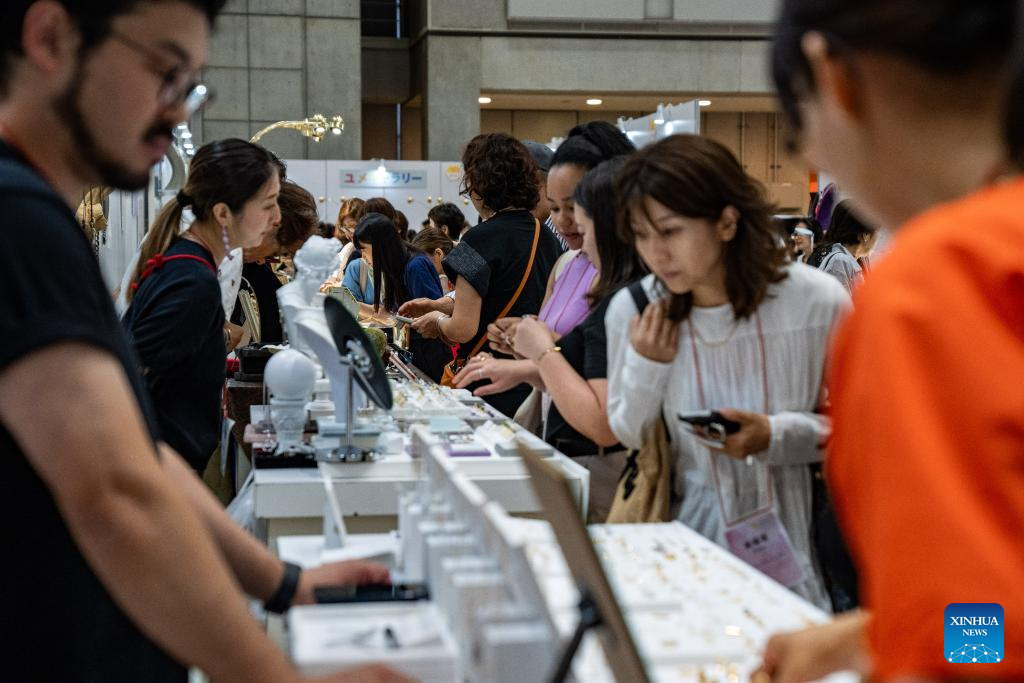People visit TOKYO JEWELRY FES in Tokyo, Japan, July 12, 2024. The event is held here from July 12 to 14, attracting about 250 exhibitors. (Xinhua/Zhang Xiaoyu)