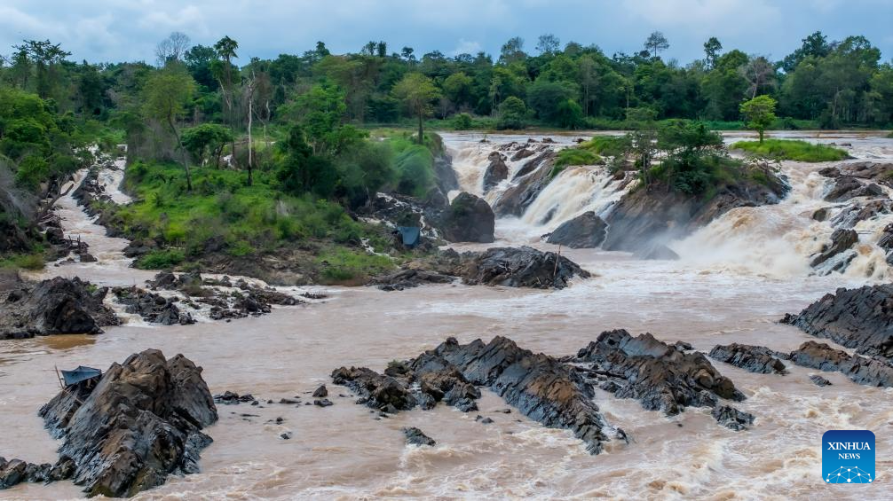 An aerial drone photo taken on July 14, 2024 shows the Khone Phapheng falls in Lao southern province of Champassak. (Photo by Kaikeo Saiyasane/Xinhua)