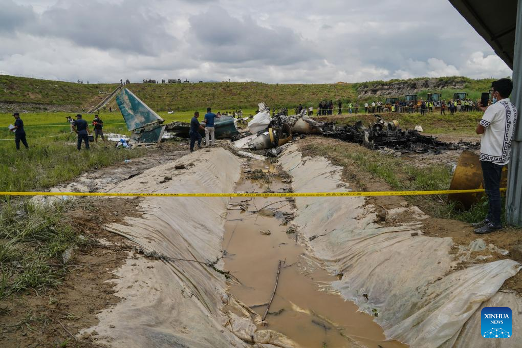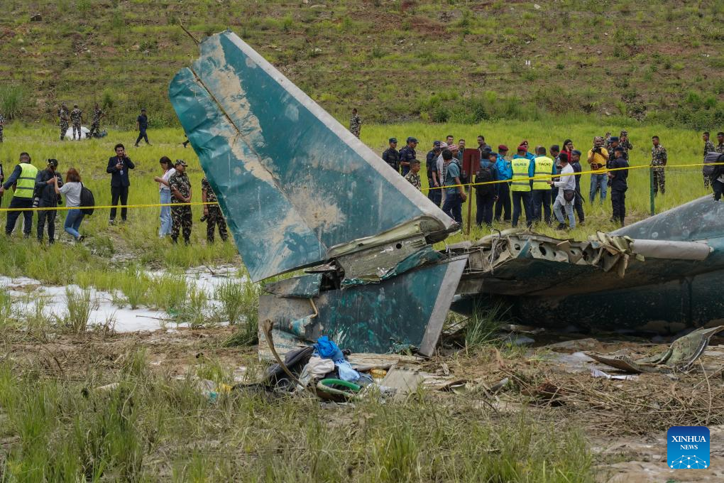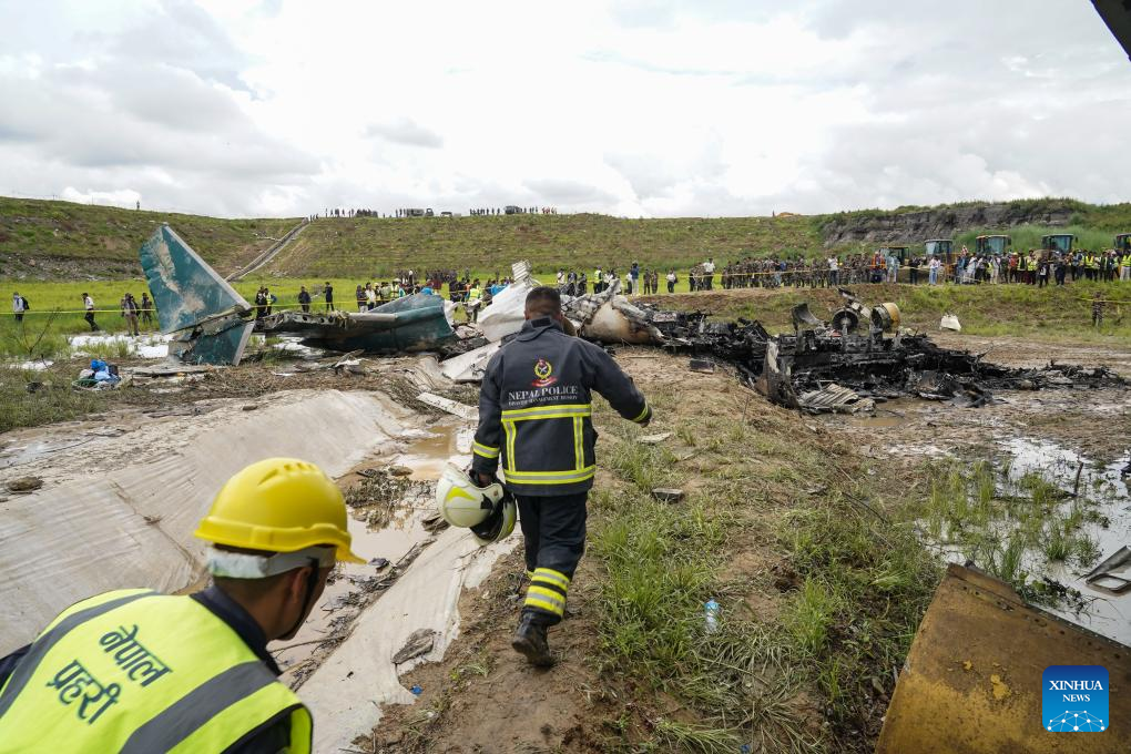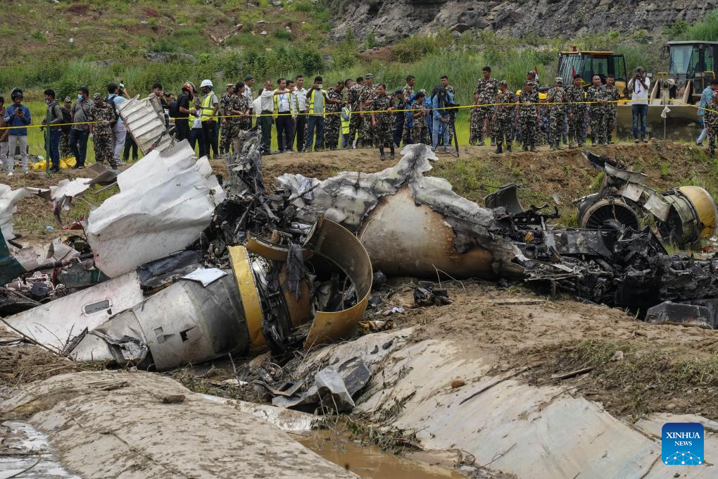 This photo taken on July 24, 2024 shows the site of an air crash at the Tribhuvan International Airport in Kathmandu, Nepal. A domestic plane crashed during take-off on Wednesday at the Tribhuvan International Airport in Kathmandu, Nepal's capital, leaving 18 dead and 1 injured. (Photo by Hari Maharjan/Xinhua)