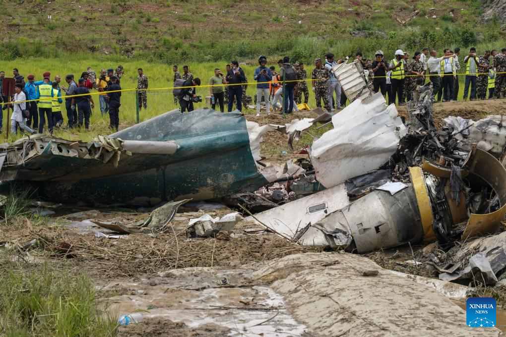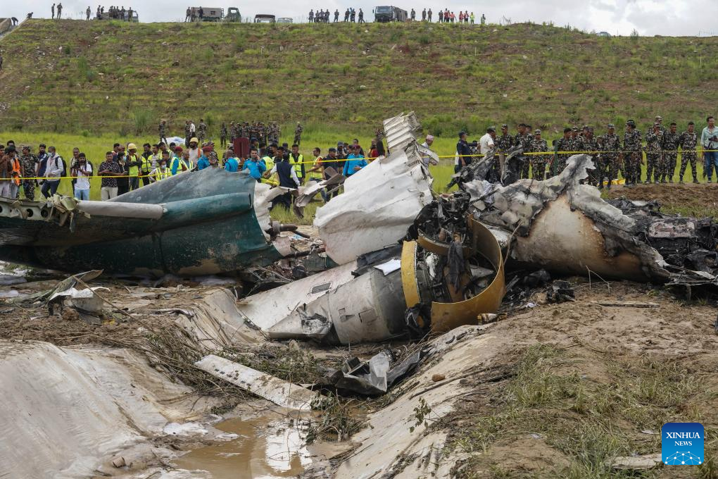 KATHMANDU, July 24 (Xinhua) -- A domestic plane crashed during take-off on Wednesday at the Tribhuvan International Airport in Kathmandu, Nepal's capital, leaving 18 dead and 1 injured.
