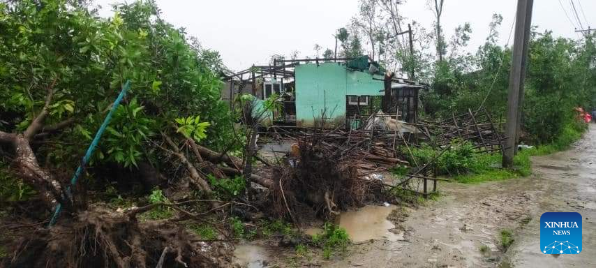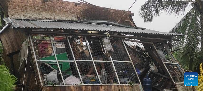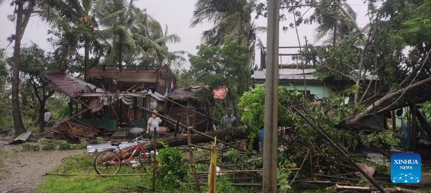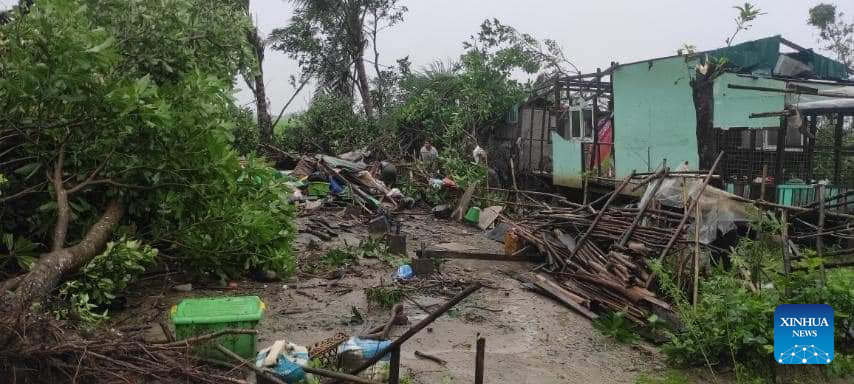 A tornado ripped through two villages in Kungyangon township of Yangon region, destroying 71 houses, an official from the Yangon Rescue Organization told Xinhua on Friday. (Yangon Rescue Organization/Handout via Xinhua)