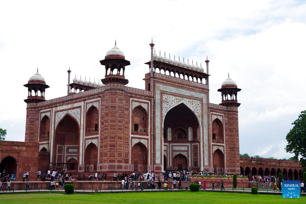 This photo taken on Aug. 3, 2024 shows the gate to the Taj Mahal in Agra, Uttar Pradesh, India.