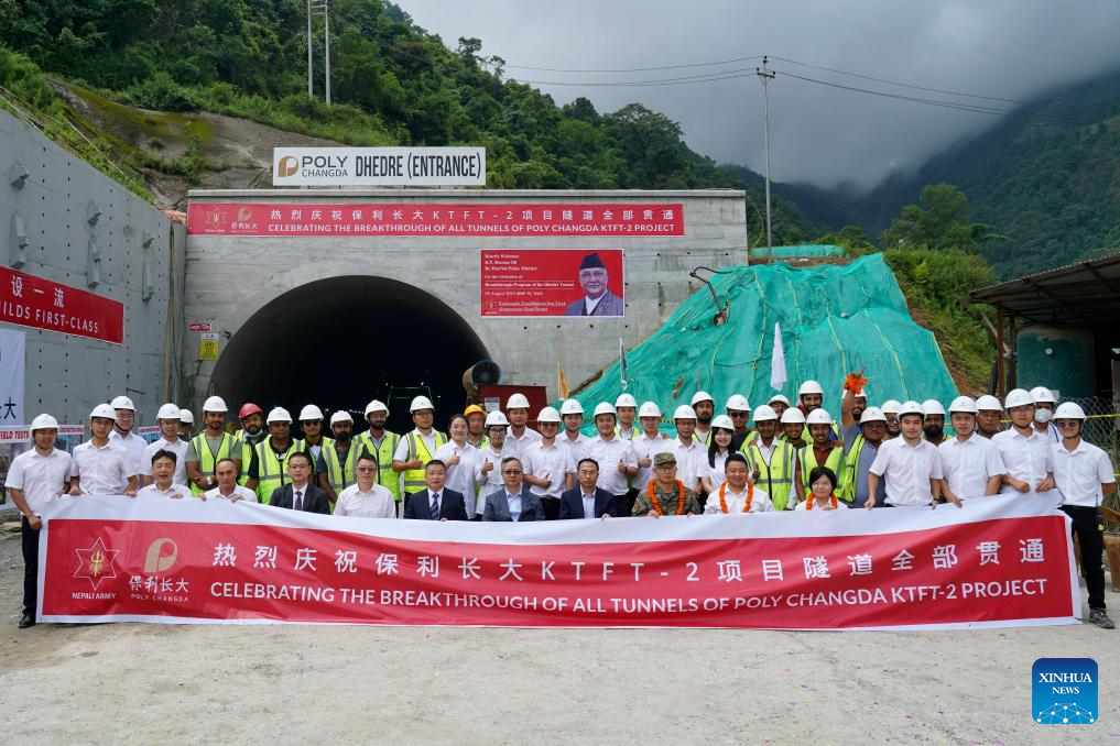 KATHMANDU, Aug. 5 (Xinhua) -- The last tunnel was broken through on Monday for the package 2 project contracted by a Chinese company under the Kathmandu-Terai/Madhesh fast track project, which Nepali Prime Minister KP Sharma Oli described as an "important milestone" toward achieving Nepal's development goals.