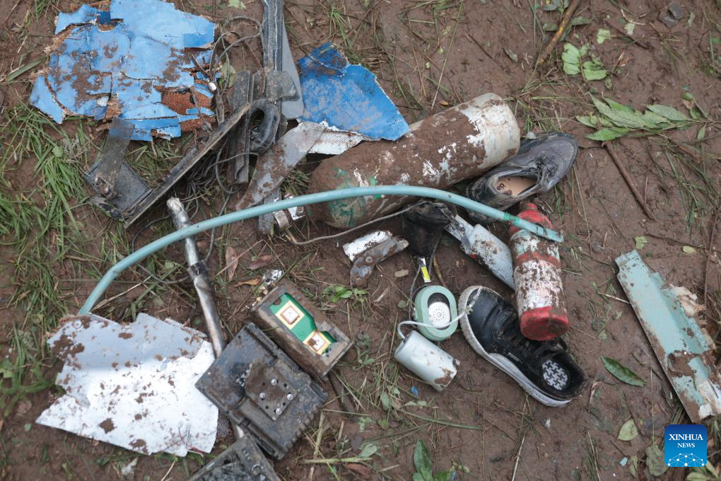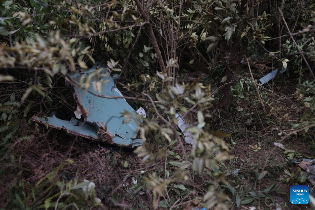 This photo taken on Aug. 7, 2024 shows the debris of a helicopter crashed in Nuwakot district of Nepal's Bagmati province. Four Chinese passengers and the pilot were killed when a helicopter crashed in Nuwakot district of Nepal's Bagmati province on Wednesday afternoon. (Photo by Sulav Shrestha/Xinhua)