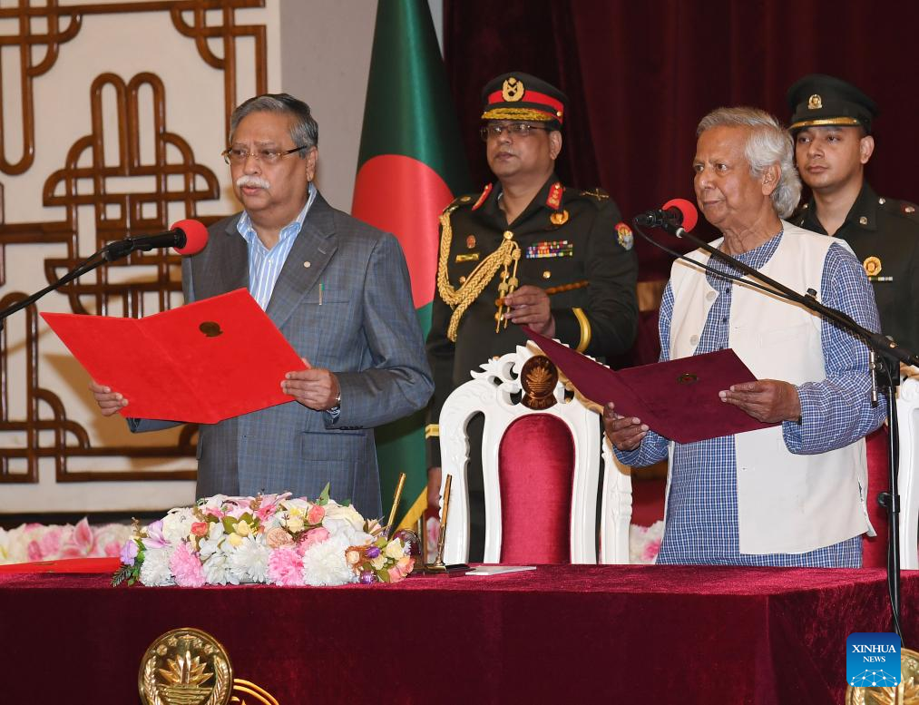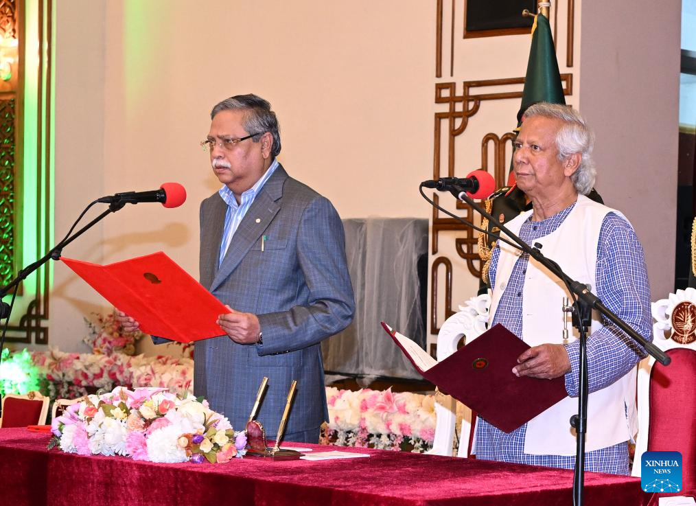 DHAKA, Aug. 8 (Xinhua) -- Bangladeshi economist Muhammad Yunus took oath as the head of the country's interim government here on Thursday.