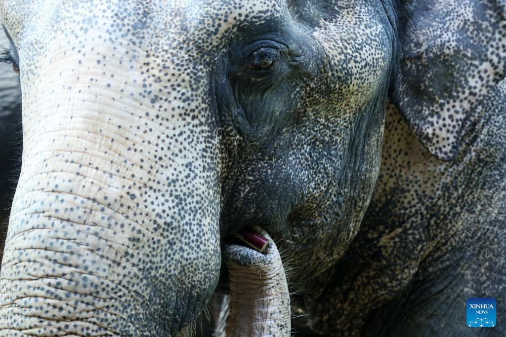 This photo taken on Aug. 11, 2024 shows an Asian elephant at the Yangon Zoological Gardens in Yangon, Myanmar. In celebration of World Elephant Day, Yangon Zoo in Myanmar hosted a special event on Sunday, featuring an educational booth near the elephant corner to raise awareness about the conservation of these majestic creatures.(Xinhua/Myo Kyaw Soe)