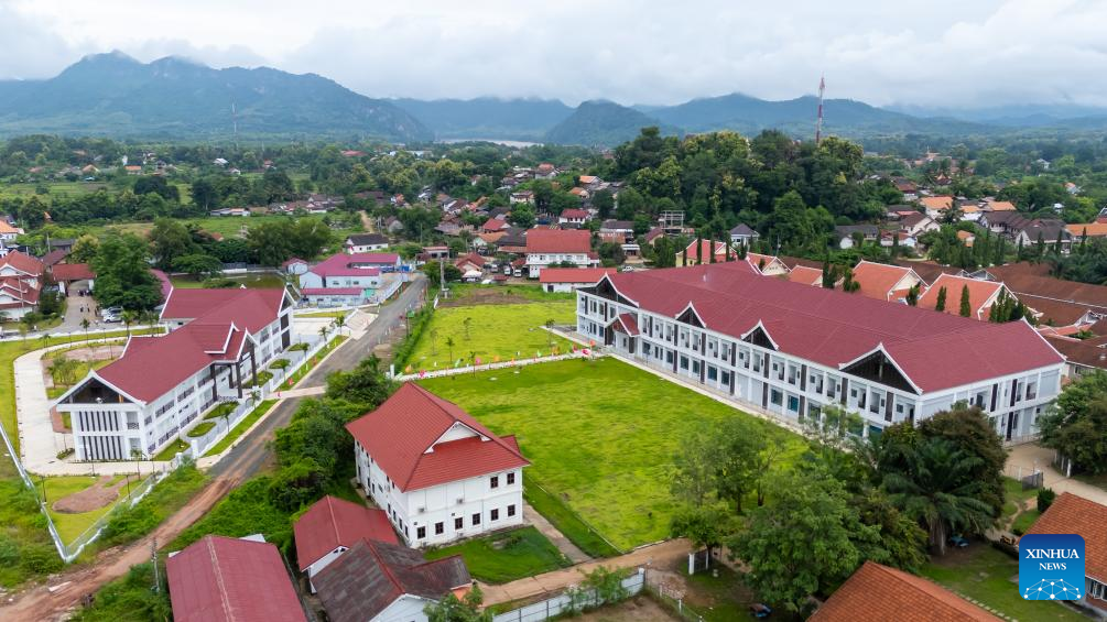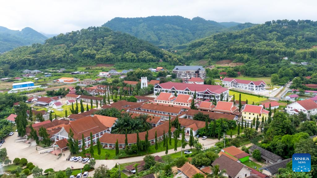 A drone photo taken on Aug. 16, 2024 shows the surgical building and expert apartments of China-aided Luang Prabang Hospital in Luang Prabang province, Laos. (Photo by Kaikeo Saiyasane/Xinhua)