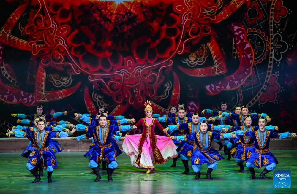 A Turpan Muqam show is staged during a performance for the Turpan grape festival in Turpan, northwest China's Xinjiang Uygur Autonomous Region, Aug. 17, 2024.