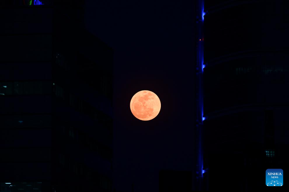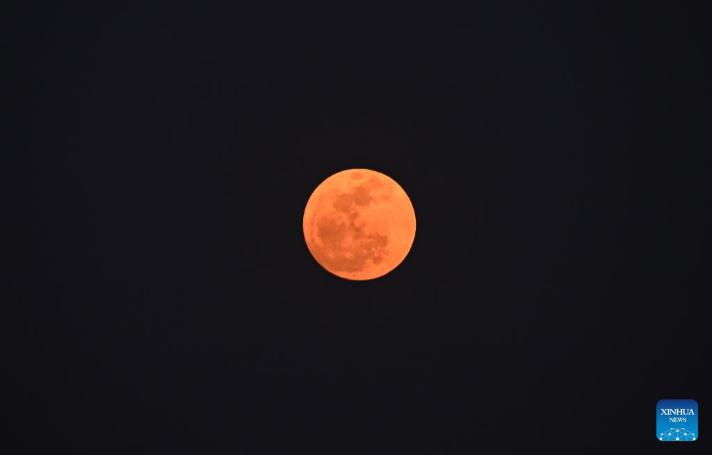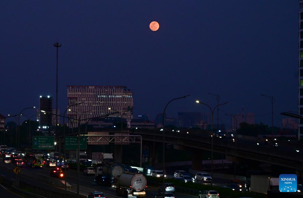 A full moon is pictured from Jakarta, Indonesia, Aug. 19, 2024. (Xinhua/Zulkarnain)