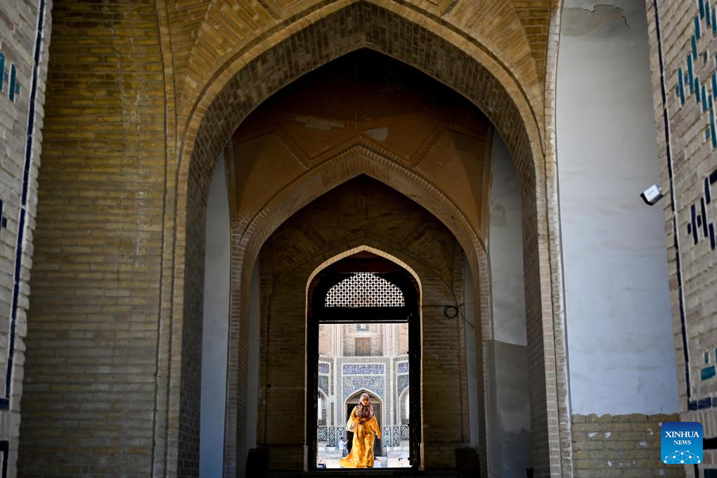 A tourist walks in the ancient city of Bukhara, Uzbekistan on Aug. 29, 2024. Bukhara, a prominent stop on the ancient Silk Route, is known as one of the oldest cities in Central Asia. (Xinhua/Cao Yang)