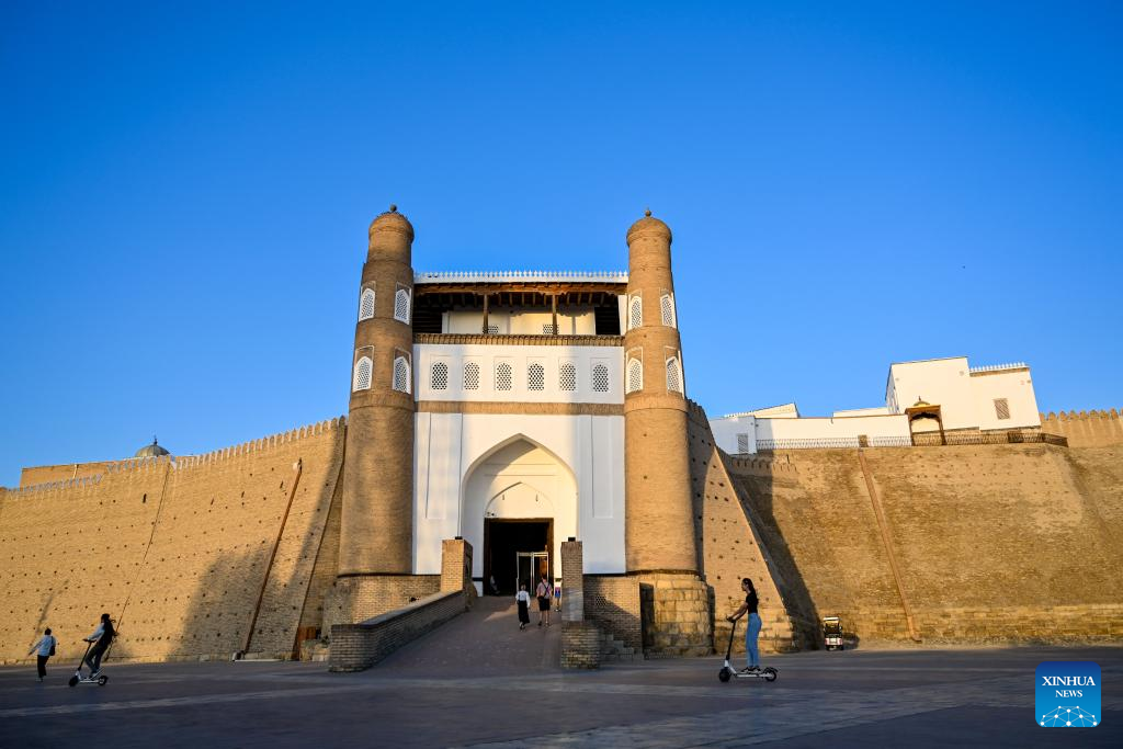 This photo taken on Aug. 28, 2024 shows the Ark fortress in Bukhara, Uzbekistan. Bukhara, a prominent stop on the ancient Silk Route, is known as one of the oldest cities in Central Asia. (Xinhua/Cao Yang)