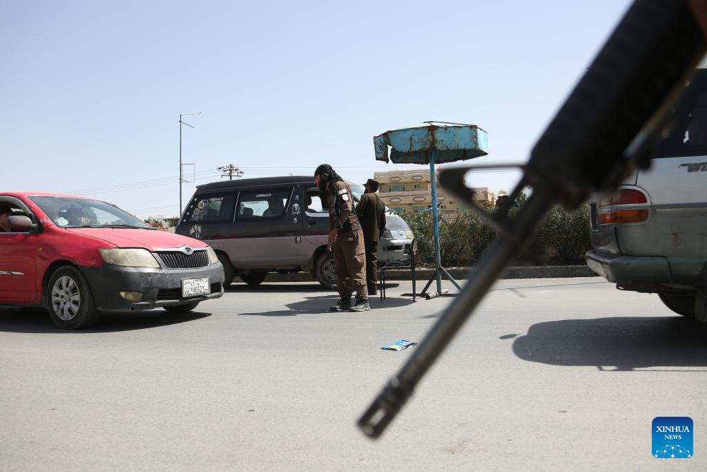 Security personnel strengthen security check in Kabul City, capital of Afghanistan, Sept. 3, 2024. Six people were killed with 13 others injured in a suicide attack on Monday afternoon in a southwestern area of Afghanistan's capital Kabul, Kabul police spokesperson Khalid Zadran said. (Photo by Saifurahman Safi/Xinhua)