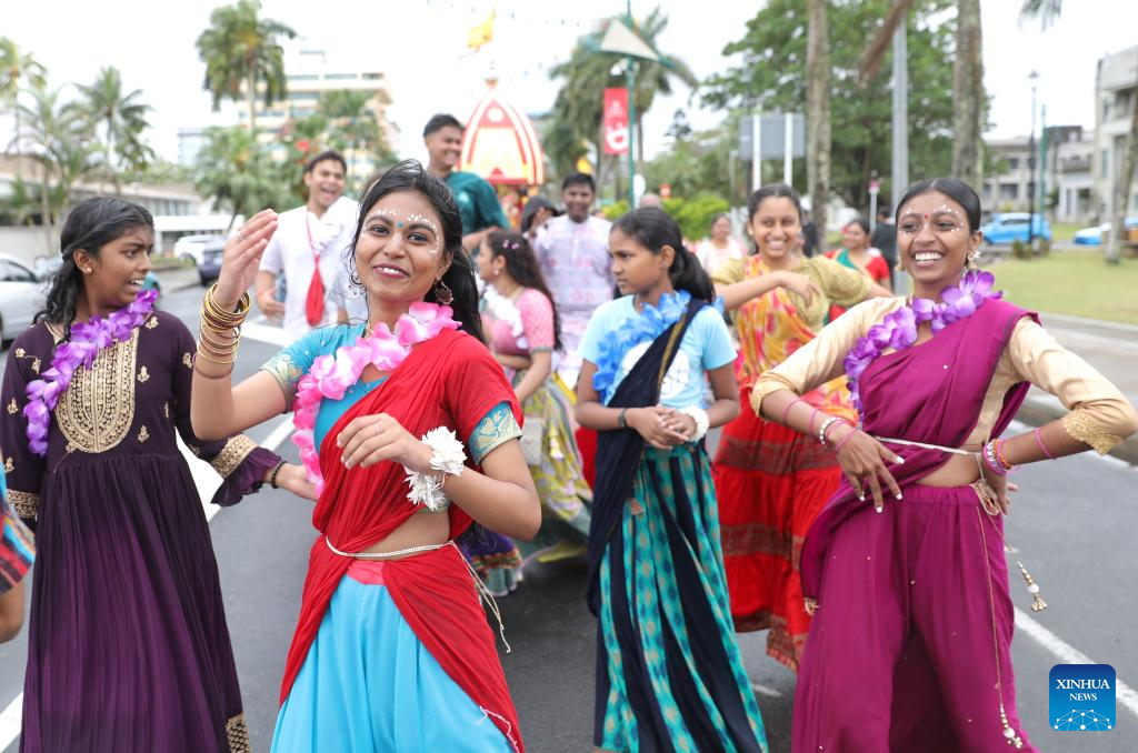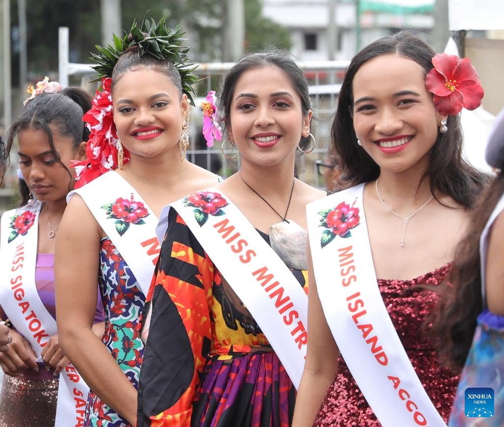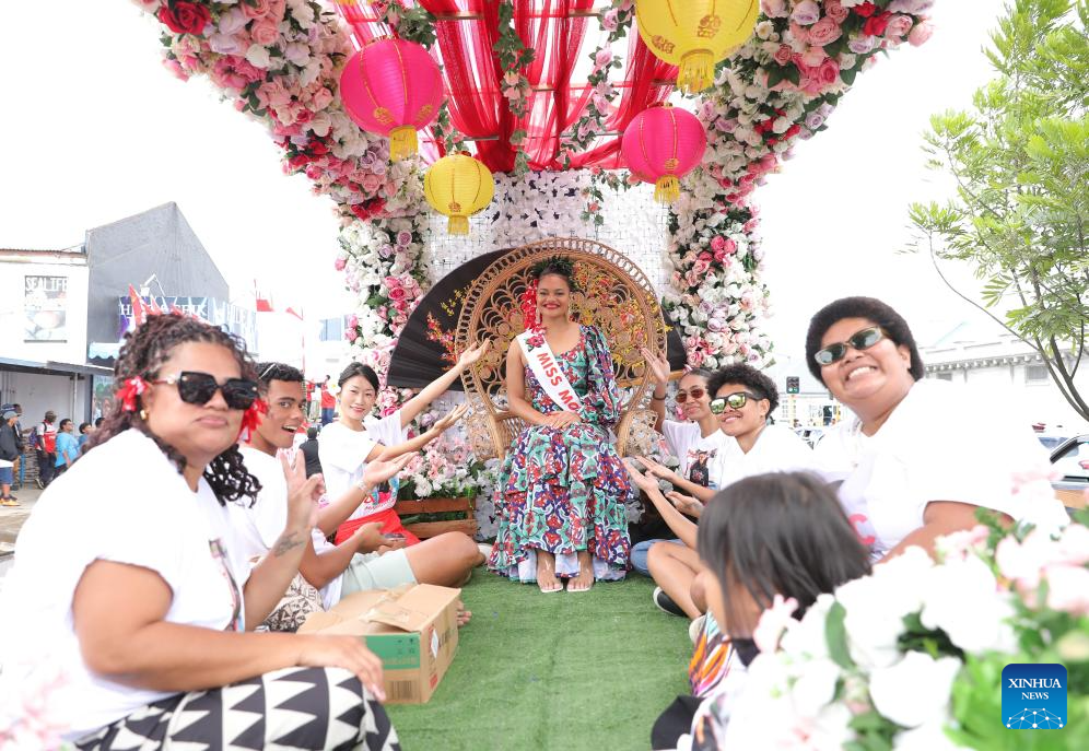 People participate in a float parade in celebration of the Hibiscus Festival in Suva, Fiji, Sept.7, 2024. This year's Hibiscus Festival, also known as the mother of all festivals in the country, took place from Aug. 31 to Sept. 7. (Photo by Sang Qinlong/Xinhua)