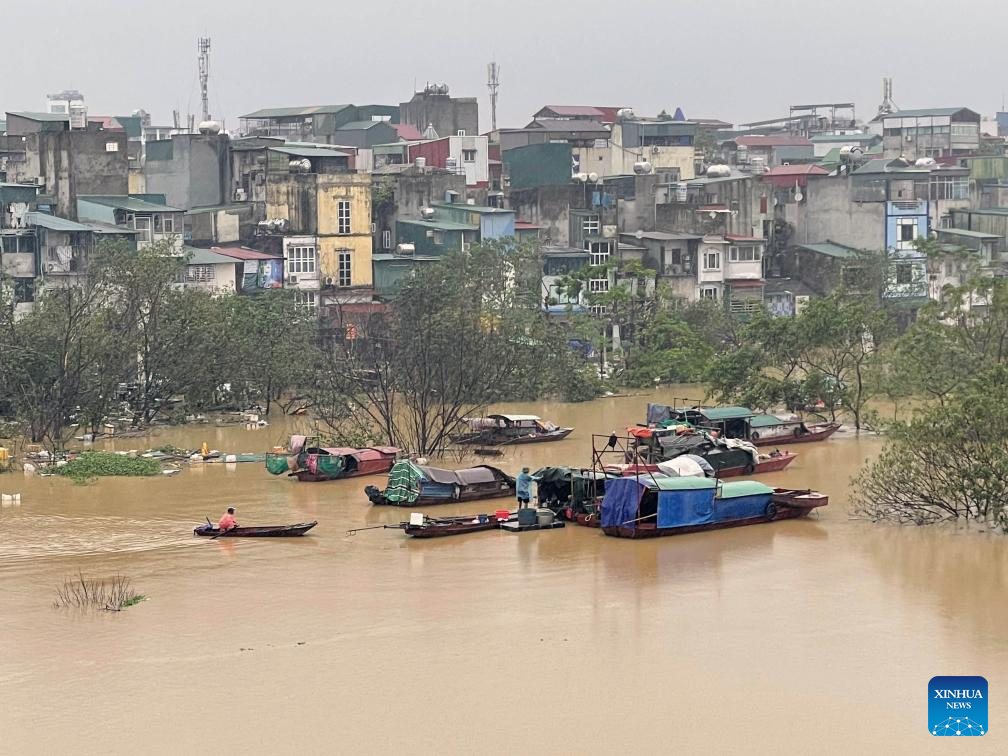 Riverside area is flooded by rising water in Vietnam's capital Hanoi, Sept. 10, 2024. As of Wednesday morning, Typhoon Yagi and the consequent landslides and floods had left 141 dead and 59 missing in Vietnam's northern region, the Ministry of Agriculture and Rural Development announced. (VNA via Xinhua)