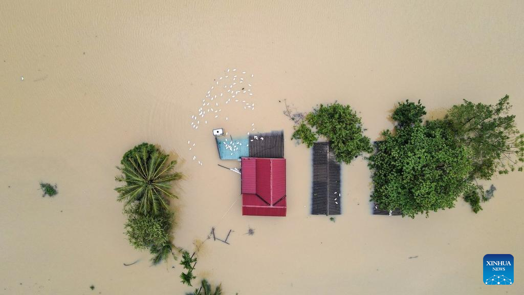 This photo taken on Sept. 11, 2024 shows flood submerged village houses in Chuong My District, Hanoi, Vietnam. As of Wednesday morning, Typhoon Yagi and the consequent landslides and floods had left 141 dead and 59 missing in Vietnam's northern region, the Ministry of Agriculture and Rural Development announced. (VNA via Xinhua)