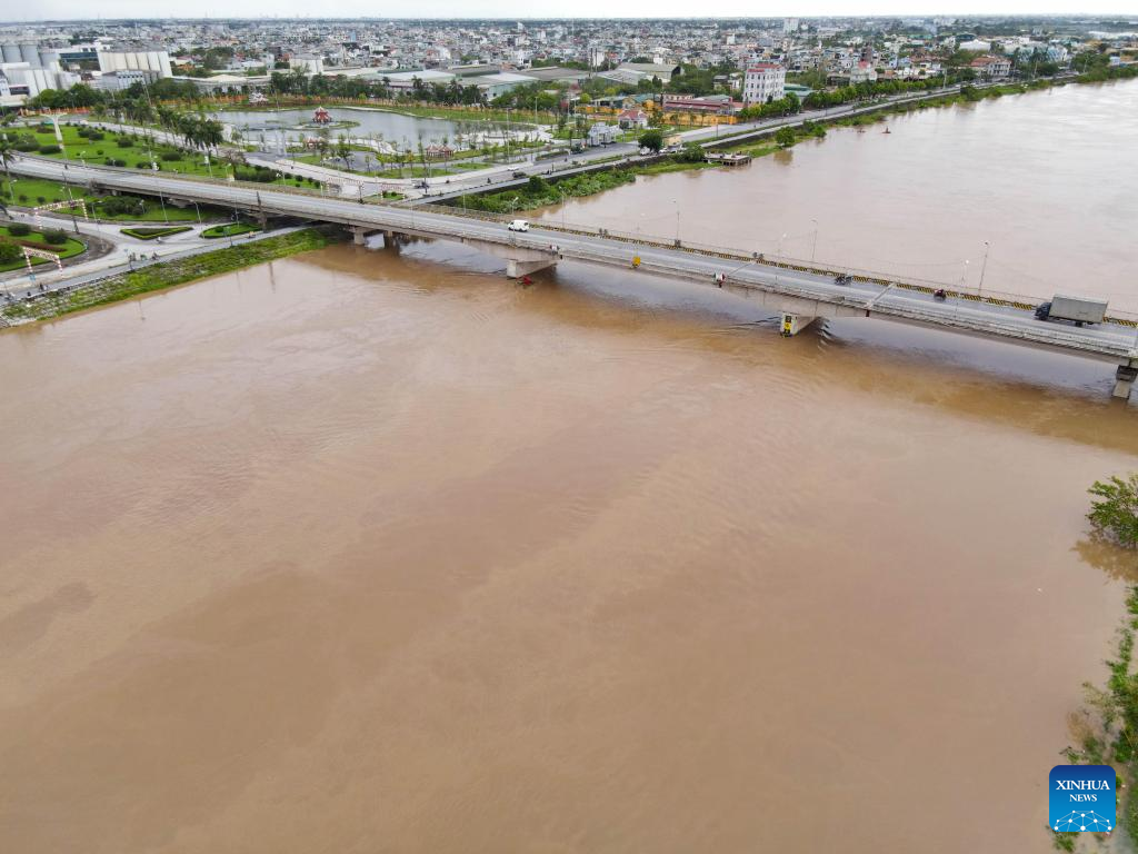 This photo taken on Sept. 10, 2024 shows a rising river in Thai Binh province, Vietnam. As of Wednesday morning, Typhoon Yagi and the consequent landslides and floods had left 141 dead and 59 missing in Vietnam's northern region, the Ministry of Agriculture and Rural Development announced. (VNA via Xinhua)