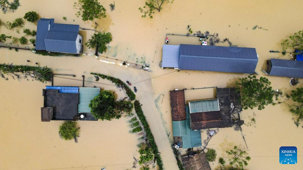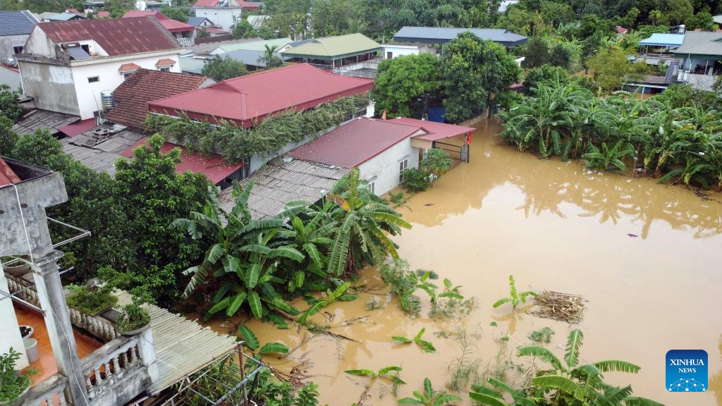 This photo taken on Sept. 10, 2024 shows houses flooded in Phu Tho province, Vietnam. As of Wednesday morning, Typhoon Yagi and the consequent landslides and floods had left 141 dead and 59 missing in Vietnam's northern region, the Ministry of Agriculture and Rural Development announced. (VNA via Xinhua)