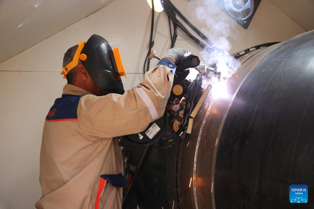 An energy field engineer works in Herat province, Afghanistan, Sept. 11, 2024. Work inauguration for the construction of the Turkmenistan-Afghanistan-Pakistan-India (TAPI) gas pipeline on Afghan territory was formally initiated by the leaders from Afghanistan and Turkmenistan on Wednesday.