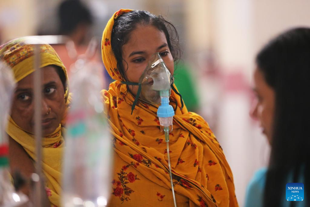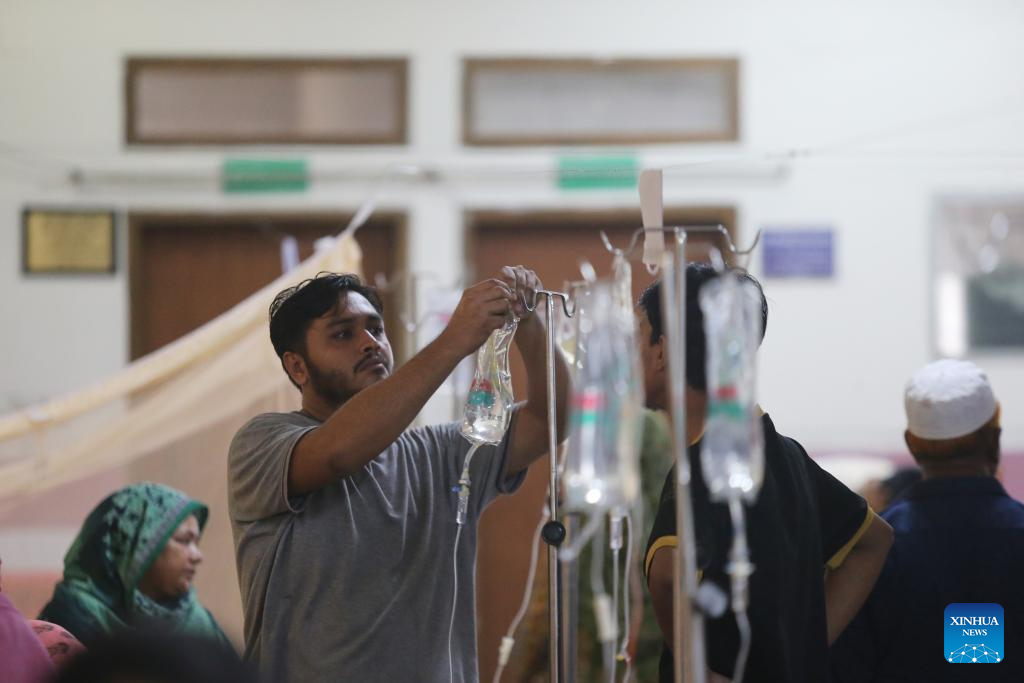 Patients infected with dengue receive treatment at a hospital in Dhaka, Bangladesh, Sept. 14, 2024. (Xinhua)