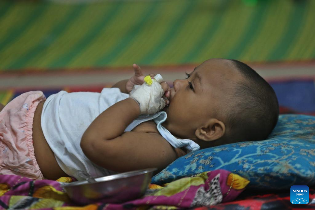 A child infected with dengue receives treatment at a hospital in Dhaka, Bangladesh, Sept. 14, 2024. (Xinhua)