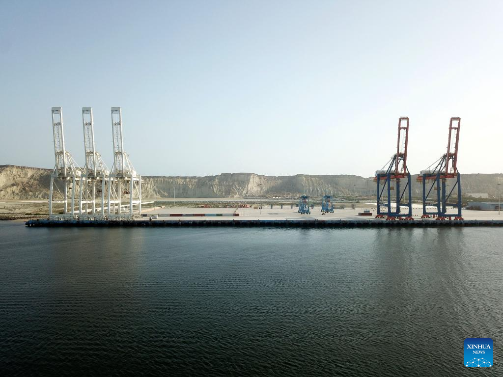 This photo taken on Sept. 18, 2024 shows a view of the Gwadar port in Gwadar, southwest Pakistan. Launched in 2013, China-Pakistan Economic Corridor (CPEC), the flagship project under the China-proposed Belt and Road Initiative (BRI), is a corridor linking Gwadar port with Kashgar in northwest China's Xinjiang Uygur Autonomous Region, highlighting energy, transport, and industrial cooperation. (Xinhua/Ahmad Kamal)