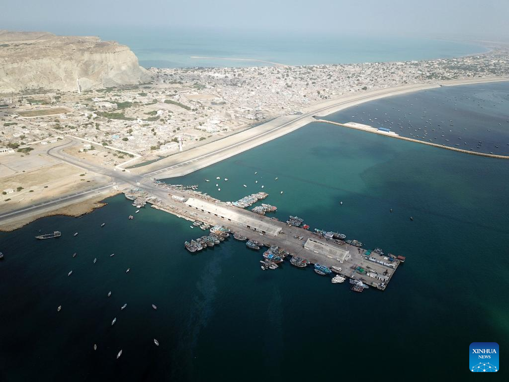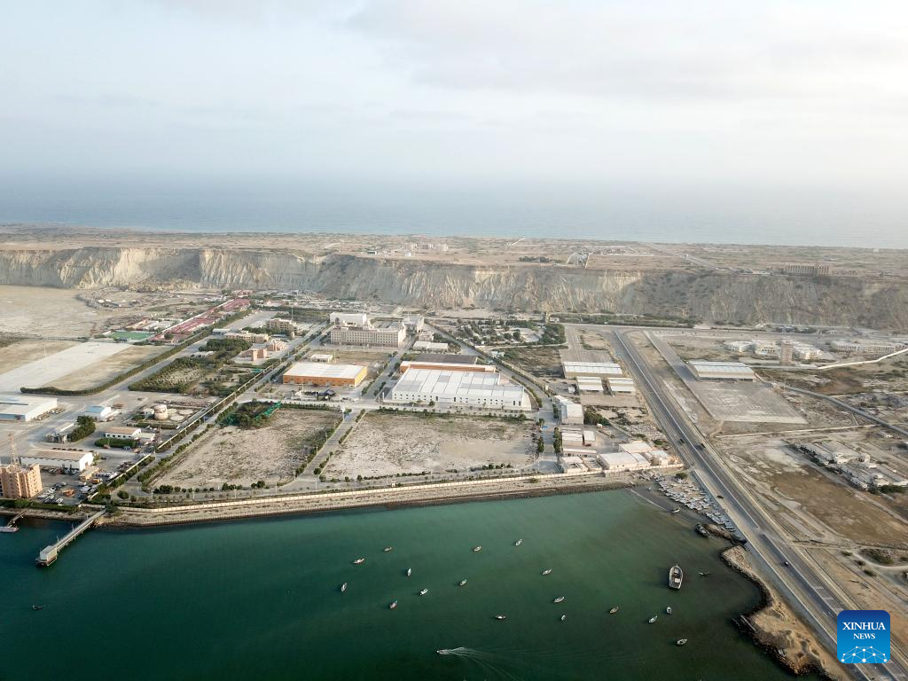 An aerial drone photo taken on Sept. 18, 2024 shows a view of the Gwadar port in Gwadar, southwest Pakistan. Launched in 2013, China-Pakistan Economic Corridor (CPEC), the flagship project under the China-proposed Belt and Road Initiative (BRI), is a corridor linking Gwadar port with Kashgar in northwest China's Xinjiang Uygur Autonomous Region, highlighting energy, transport, and industrial cooperation. (Xinhua/Ahmad Kamal)