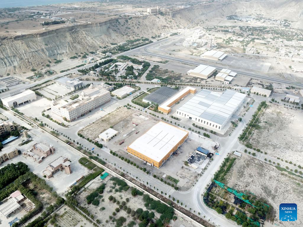 An aerial drone photo taken on Sept. 17, 2024 shows a view of free zone area of the Gwadar port in Gwadar, southwest Pakistan. Launched in 2013, China-Pakistan Economic Corridor (CPEC), the flagship project under the China-proposed Belt and Road Initiative (BRI), is a corridor linking Gwadar port with Kashgar in northwest China's Xinjiang Uygur Autonomous Region, highlighting energy, transport, and industrial cooperation. (Xinhua/Ahmad Kamal)