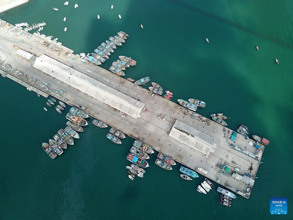 An aerial drone photo taken on Sept. 17, 2024 shows a view of fishermen dockyard near the Gwadar port in Gwadar, southwest Pakistan. Launched in 2013, China-Pakistan Economic Corridor (CPEC), the flagship project under the China-proposed Belt and Road Initiative (BRI), is a corridor linking Gwadar port with Kashgar in northwest China's Xinjiang Uygur Autonomous Region, highlighting energy, transport, and industrial cooperation. (Xinhua/Ahmad Kamal)