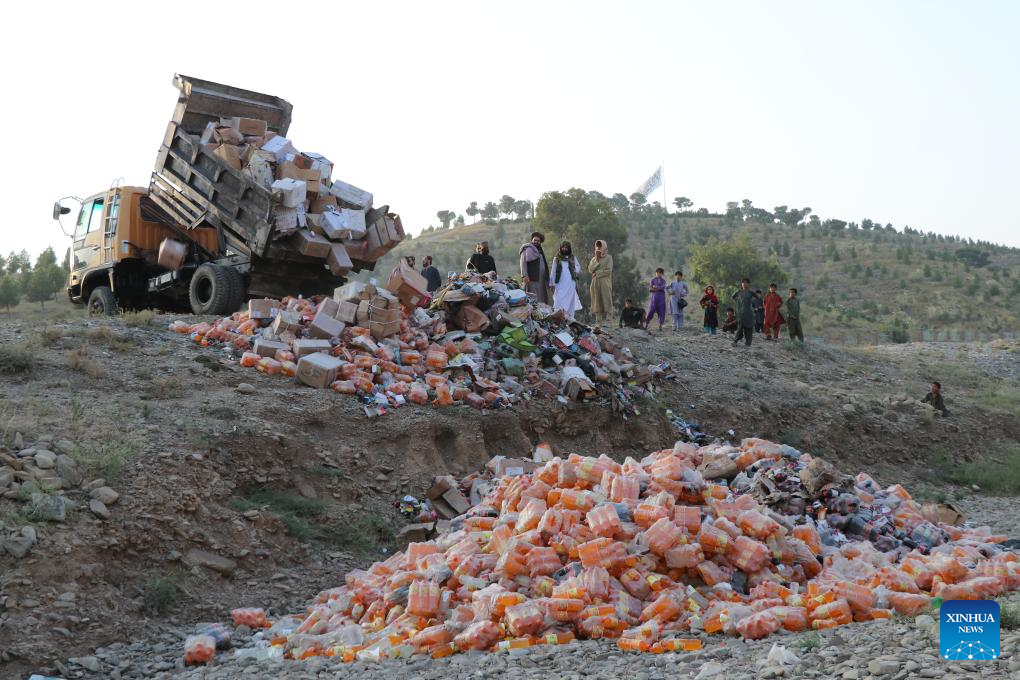 Expired and low-quality medicine and food items are unloaded in eastern Khost province, Afghanistan, Sept. 23, 2024. (Photo by Yusuf Mangal/Xinhua)