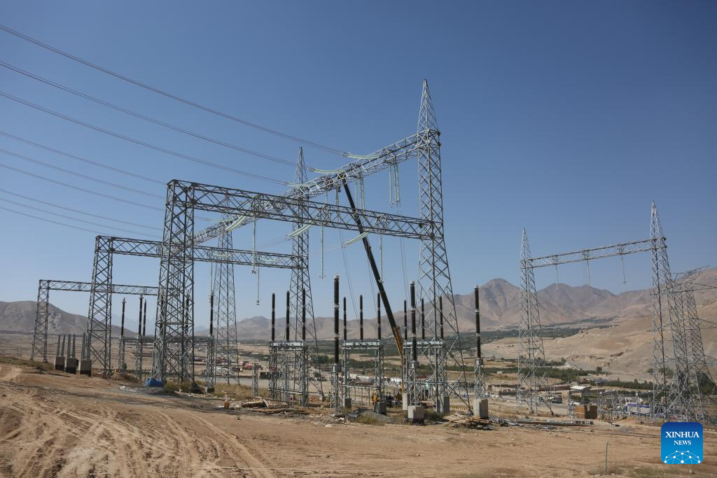 This photo taken on Oct. 2, 2024 shows an electricity substation under construction in Kabul, Afghanistan. The Afghan power company, Da Afghanistan Breshna Sherkat, has inked three memorandums of understanding (MoUs) with domestic companies to produce 240 megawatts of electricity, the company said in a statement on Monday. (Photo by Saifurahman Safi/Xinhua)