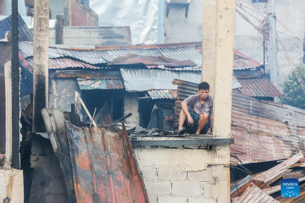 A resident returns to his charred home after a fire at a slum area in Manila, the Philippines, on Oct. 15, 2024. (Xinhua/Rouelle Umali)