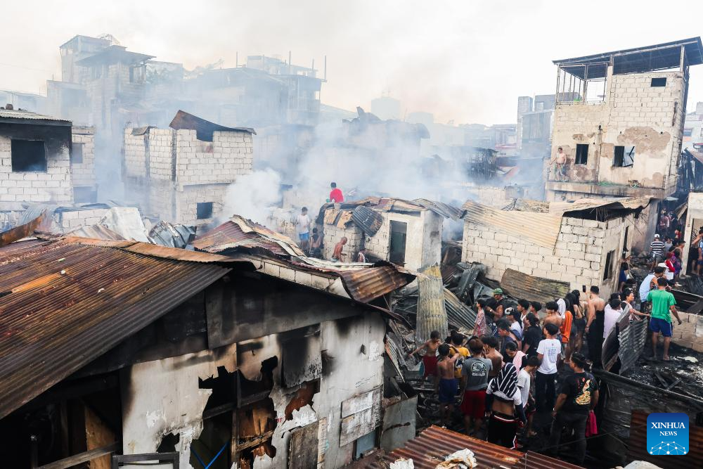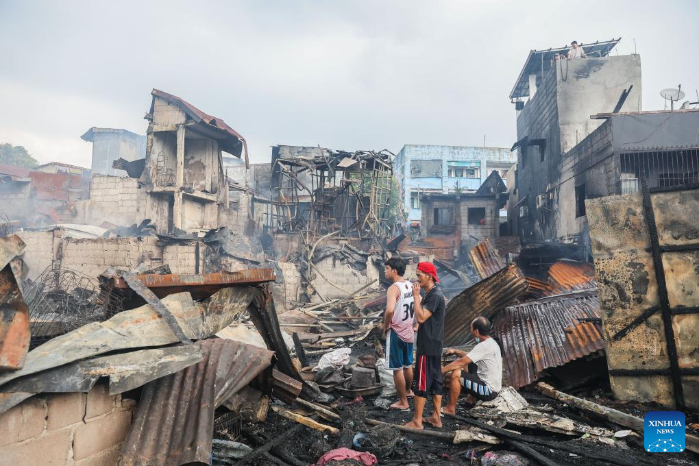 Residents return to their charred homes after a fire at a slum area in Manila, the Philippines, on Oct. 15, 2024. (Xinhua/Rouelle Umali)