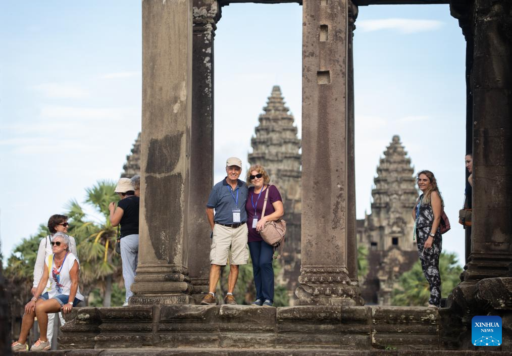 Tourists visit the Angkor Wat temple in Siem Reap province, Cambodia on Oct. 18, 2024. (Photo by Sao Khuth/Xinhua)