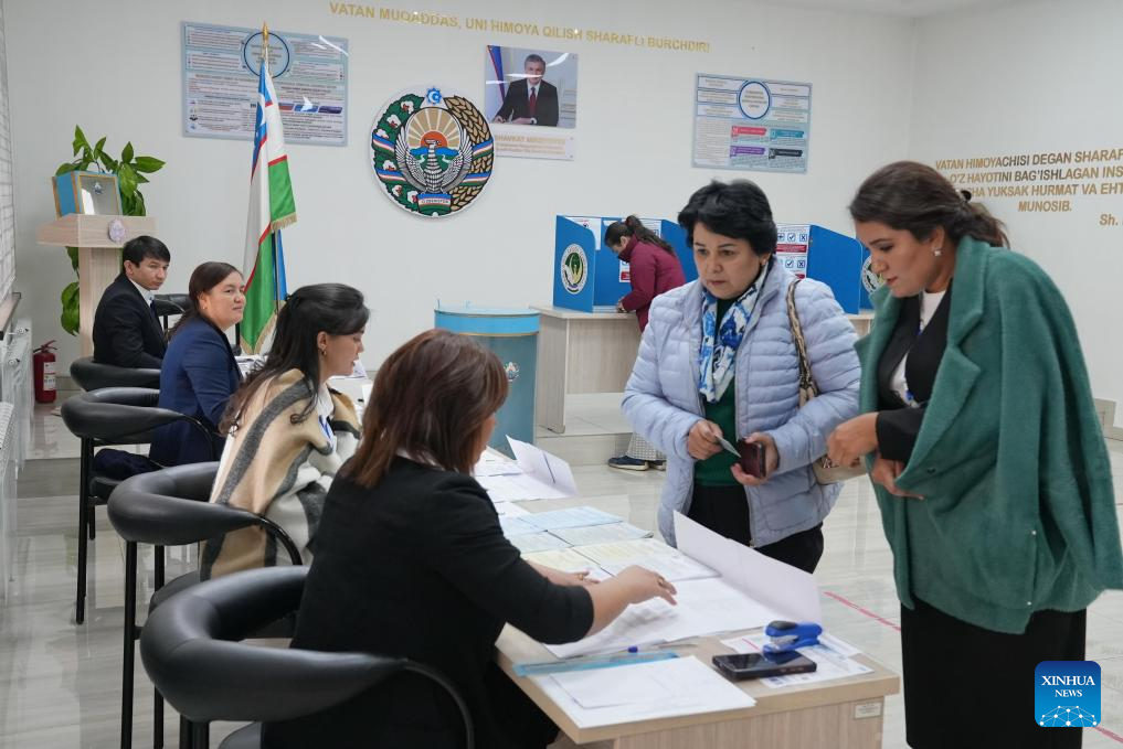 TASHKENT, Oct. 27 (Xinhua) -- Uzbekistan began voting in its parliamentary and local council elections today, conducting its first use of a mixed electoral system. Polls opened at 8:00 a.m. (0300 GMT) and will close at 8:00 p.m. local time.