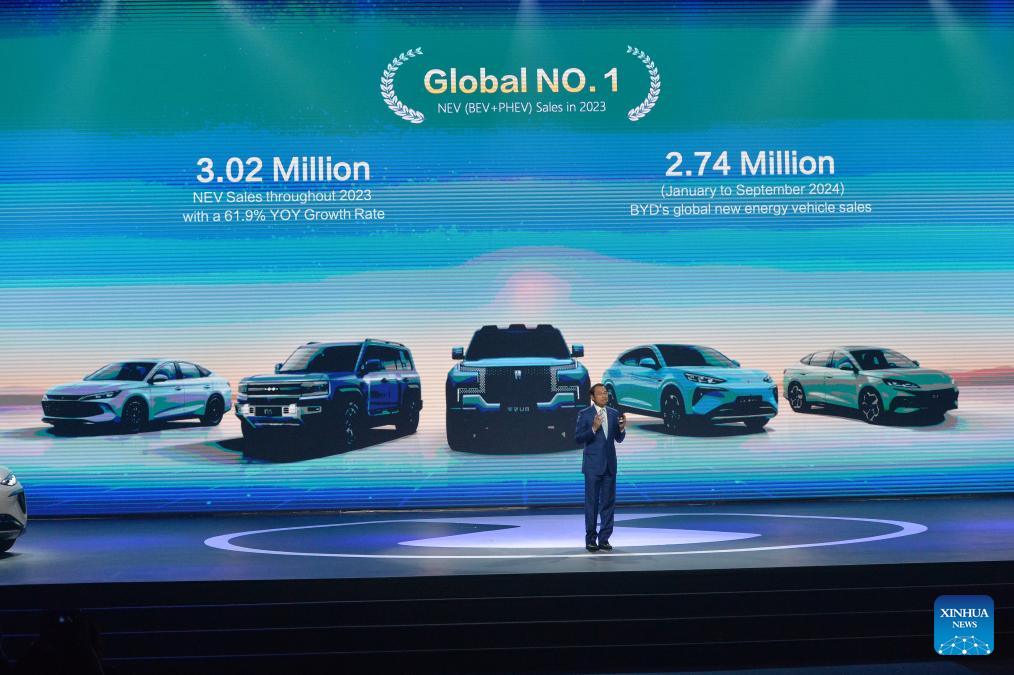 BANGKOK, Nov. 2 (Xinhua) -- Chinese carmaker BYD officially launched its premium brand DENZA in Thailand on Friday in a move to expand its presence in the Southeast Asian country's upscale automotive market.