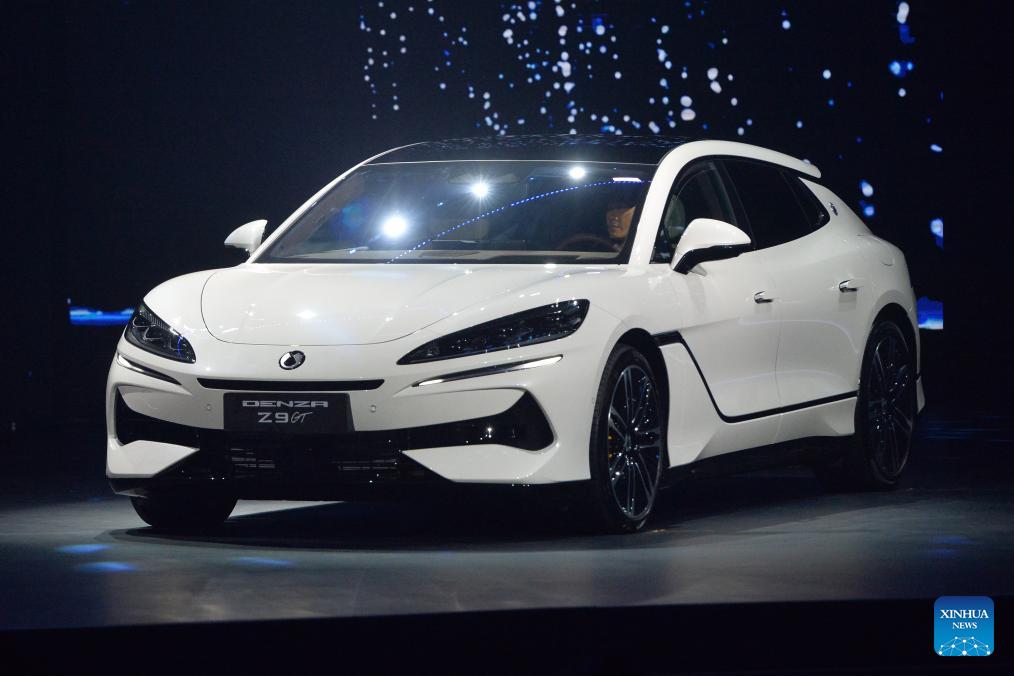 A DENZA vehicle is on display in Bangkok, Thailand, Nov 1, 2024. Chinese carmaker BYD officially launched its premium brand DENZA in Thailand on Friday in a move to expand its presence in the Southeast Asian country's upscale automotive market. (Xinhua/Rachen Sageamsak)