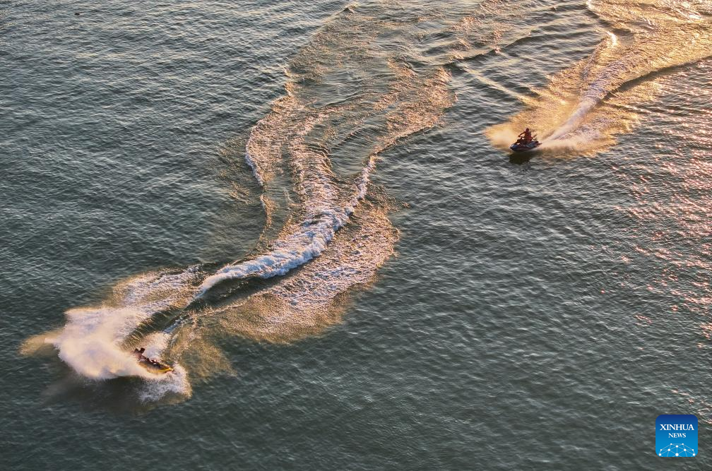 Tourists enjoy the sunset scenery at Sizhou Village in Changzhou District of Wuzhou City, south China's Guangxi Zhuang Autonomous Region, Nov. 14, 2024. Located on the Sizhou Island in Xijiang River and bestowed with rich intangible cultural heritage and beautiful natural scenery, Sizhou Village has become a famous tourism attraction.