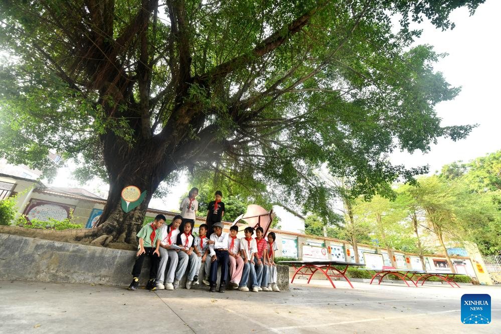 Students sing folk songs at a primary school in Changzhou District of Wuzhou City, south China's Guangxi Zhuang Autonomous Region, Nov. 14, 2024. Located on the Sizhou Island in Xijiang River and bestowed with rich intangible cultural heritage and beautiful natural scenery, Sizhou Village has become a famous tourism attraction.