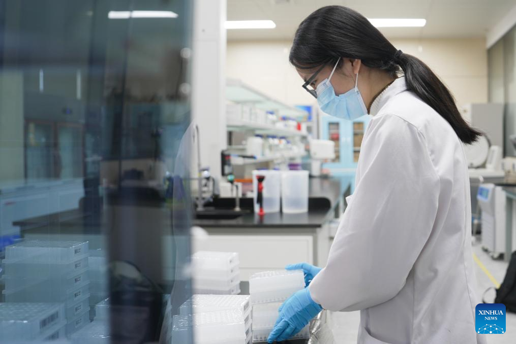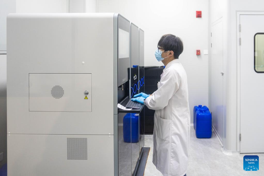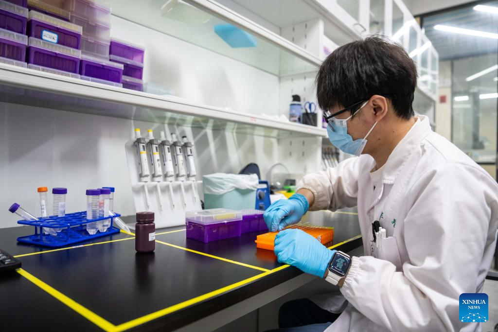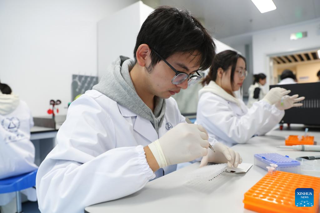 A researcher conducts whole-genome sequencing of rice seeds at a laboratory in Higentec Co., Ltd. in Changsha, central China's Hunan Province, Nov. 23, 2024. Hunan, one of the major agricultural provinces of China, has been making efforts to boost seed industry by implementing action plans, pooling the resources of agricultural science and technology innovation, and building up seed breeding laboratories. (Xinhua/Chen Sihan)