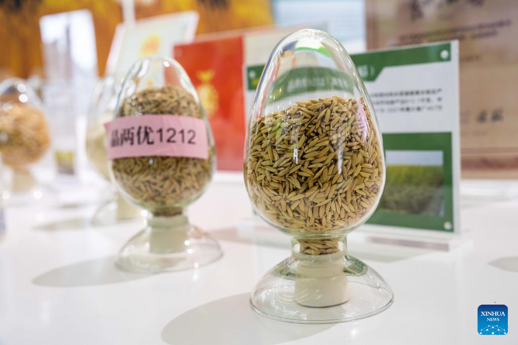 Rice seeds samples are pictured in Yuelushan seed industry innovation center in Changsha, central China's Hunan Province, Nov. 23, 2024. Hunan, one of the major agricultural provinces of China, has been making efforts to boost seed industry by implementing action plans, pooling the resources of agricultural science and technology innovation, and building up seed breeding laboratories. (Xinhua/Chen Sihan)