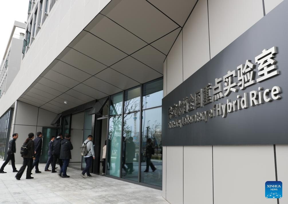 Visitors enter the state key laboratory of hybrid rice at Yuelushan Laboratory in Changsha, central China's Hunan Province, Nov. 23, 2024. Hunan, one of the major agricultural provinces of China, has been making efforts to boost seed industry by implementing action plans, pooling the resources of agricultural science and technology innovation, and building up seed breeding laboratories. (Xinhua/Wang Jingqiang)