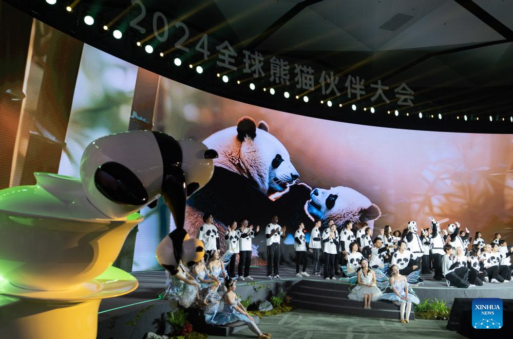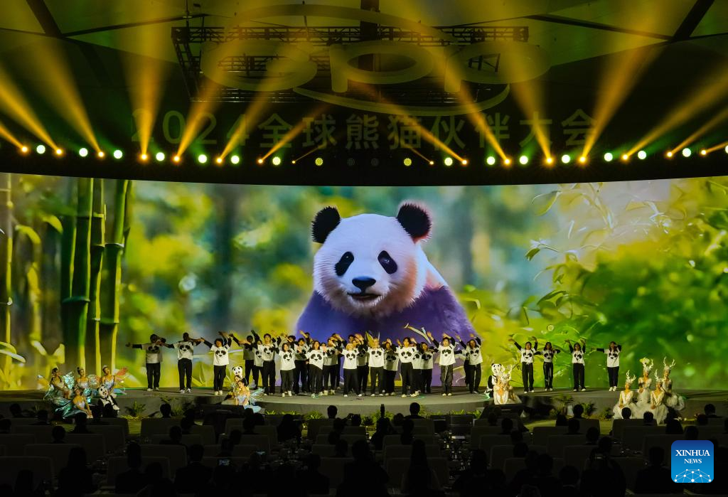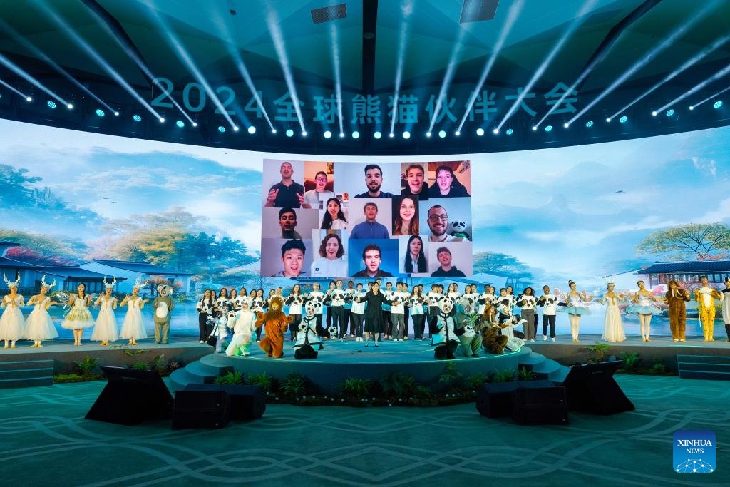 Performers stage a chorus during the Global Panda Partners 2024 conference in Chengdu, southwest China's Sichuan Province, Nov. 26, 2024.