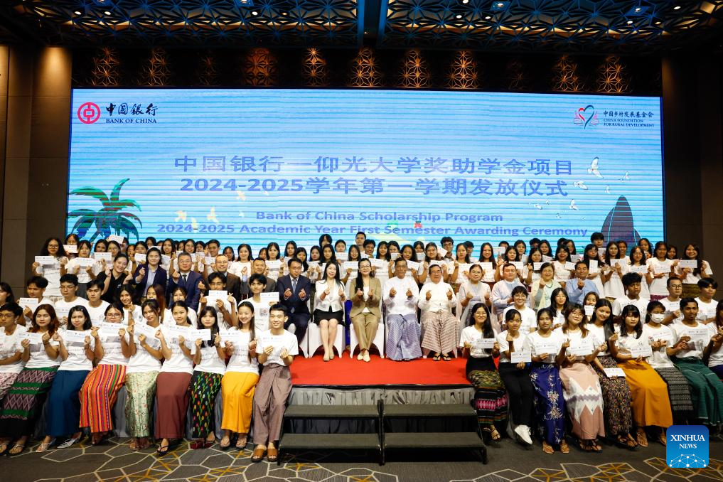 YANGON, Dec. 6 (Xinhua) -- The Bank of China (Hong Kong) Yangon Branch awarded stipends and scholarships to 100 Myanmar students from the University of Yangon for the first semester of the 2024-25 academic year at a ceremony held in Yangon on Friday.