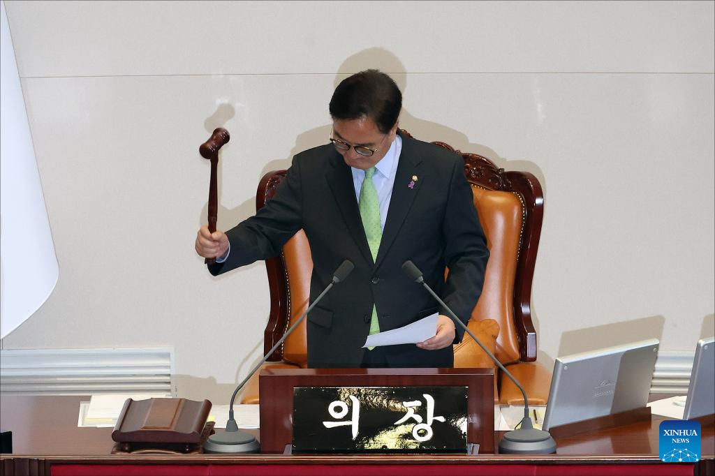 South Korea's National Assembly Speaker Woo Won-shik ends the voting process on President Yoon Suk-yeol's impeachment motion in Seoul, South Korea, Dec. 7, 2024. South Korea's parliament on Saturday failed to pass President Yoon Suk-yeol's impeachment motion as most of ruling People Power Party lawmakers refused to vote on it. (Xinhua)